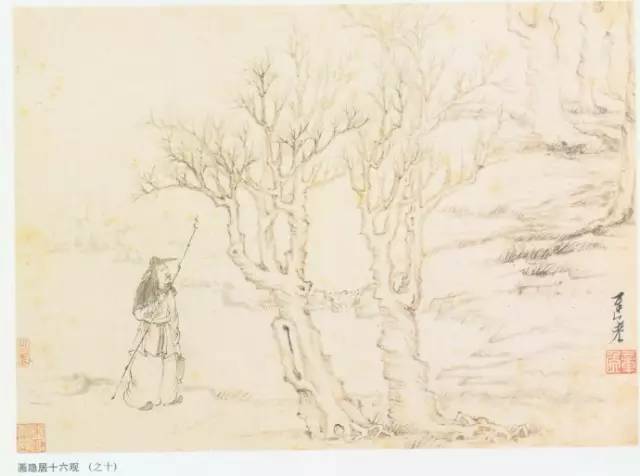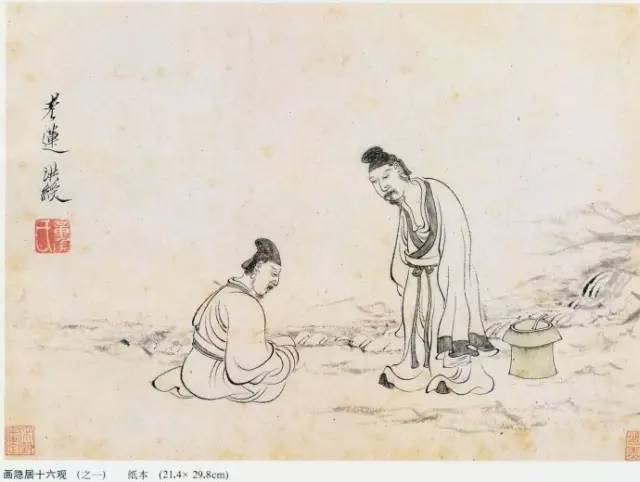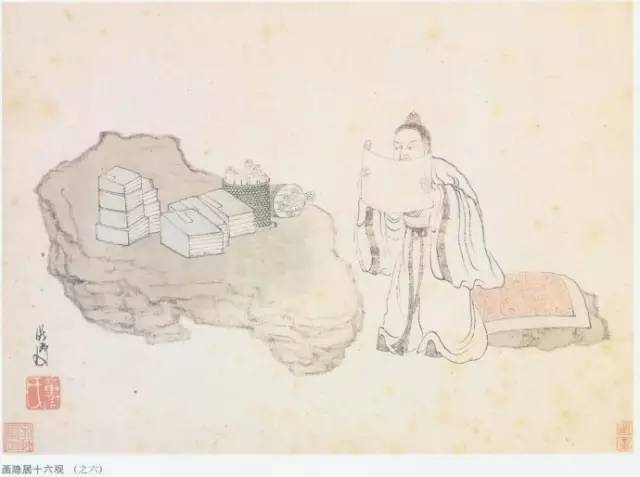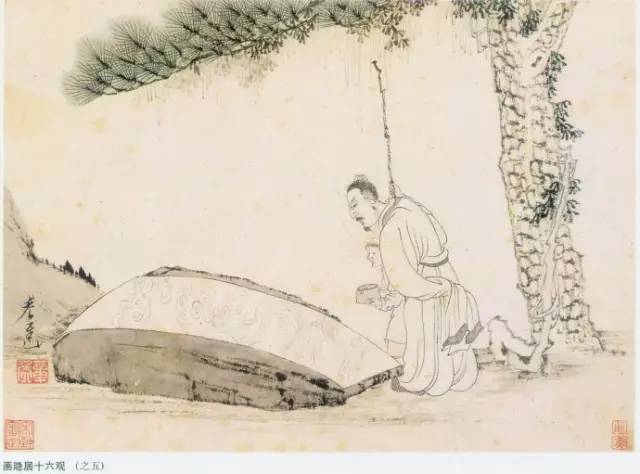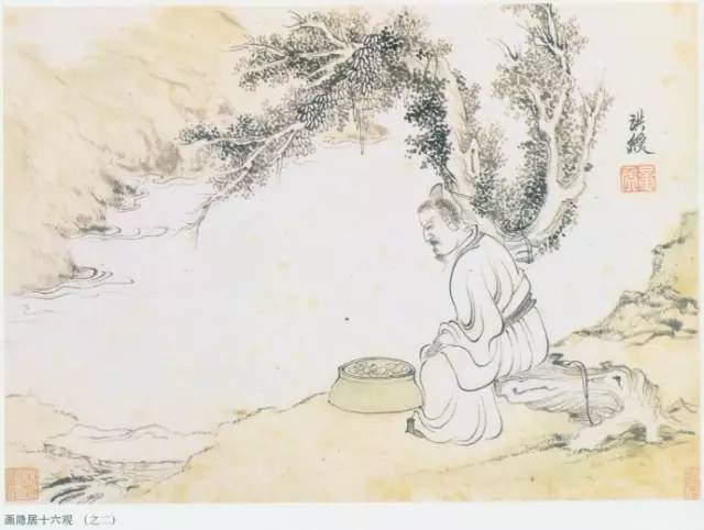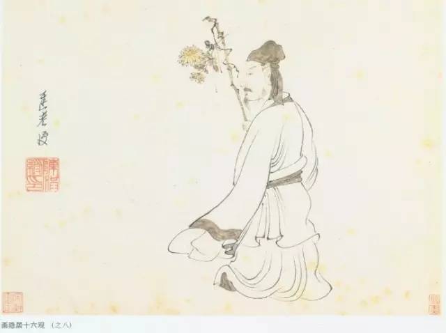 陈老莲的绘画不仅仅是视觉上的享受,更是他内心情感的抒发和寄托。他善于通过画作表达对生活的感悟、对历史的沉思以及对自然的热爱。在他的笔下,无论是人物、花鸟还是山水,都蕴含着深厚的情感和文化内涵。尤其是他的人物画,常常借古喻今,寄托自己的政治理想和人生抱负。例如,他的《隐居十六观图册》就借用了佛经《观无量寿经》中的故事,通过描绘隐士生活中的十六件事,寄托了自己对隐逸生活的向往和对社会现实的批判。